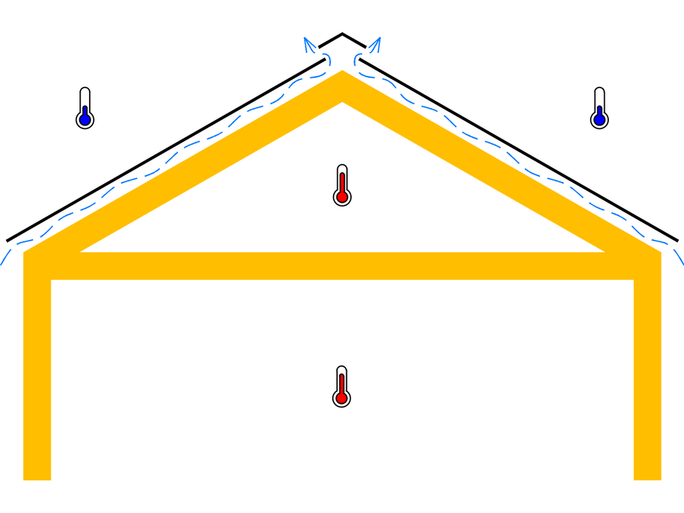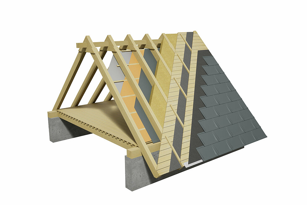Belüftete Dachkonstruktionen verfügen über eine Luftschicht zwischen der Wärmedämmung und der Dacheindeckung. Die Lüftungsebene sorgt für den Abtransport von Wärme und Feuchtigkeit, welche durch Diffusion aus dem Innenraum in die Dachkonstruktion gelangt. Dies wirkt sich positiv auf das Innenraumklima aus und reduziert das Risiko von Tauwasser und Bauschäden.