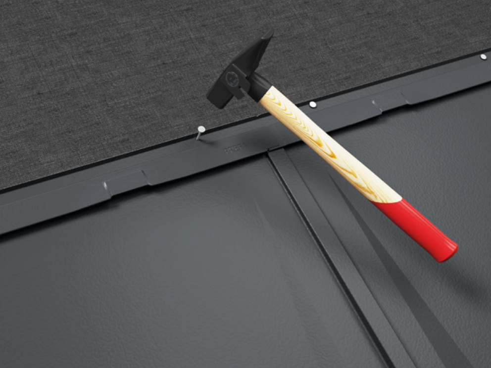 Befestigen Sie die Dachplatten R.16 mit den mitgelieferten PREFA Rillennägeln 2,8/25 (Basisbefestigung 3 Stk. je Dachplatte R.16). Bei PREFA Deckungen über mehrlagigen Bitumenschichten (z. B. Bitumenschindeln) benötigen Sie längere Rillennägel (z. B. 2,8/40). Bitte bei der Bestellung gesondert anführen.