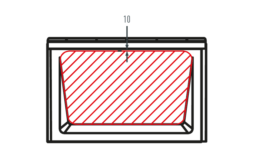 Achten Sie bei der Montage von Dachzubehörprodukten auf den zulässigen Montagebereich auf den Dachplatten R.16. Nachfolgende Abbildung zeigt den Montagebereich für Zubehörprodukte auf Fußteilen. Für andere Zubehörprodukte können abweichende Montagebereiche definiert sein.