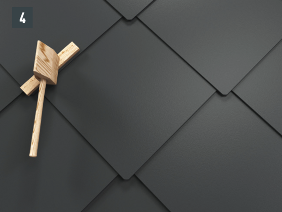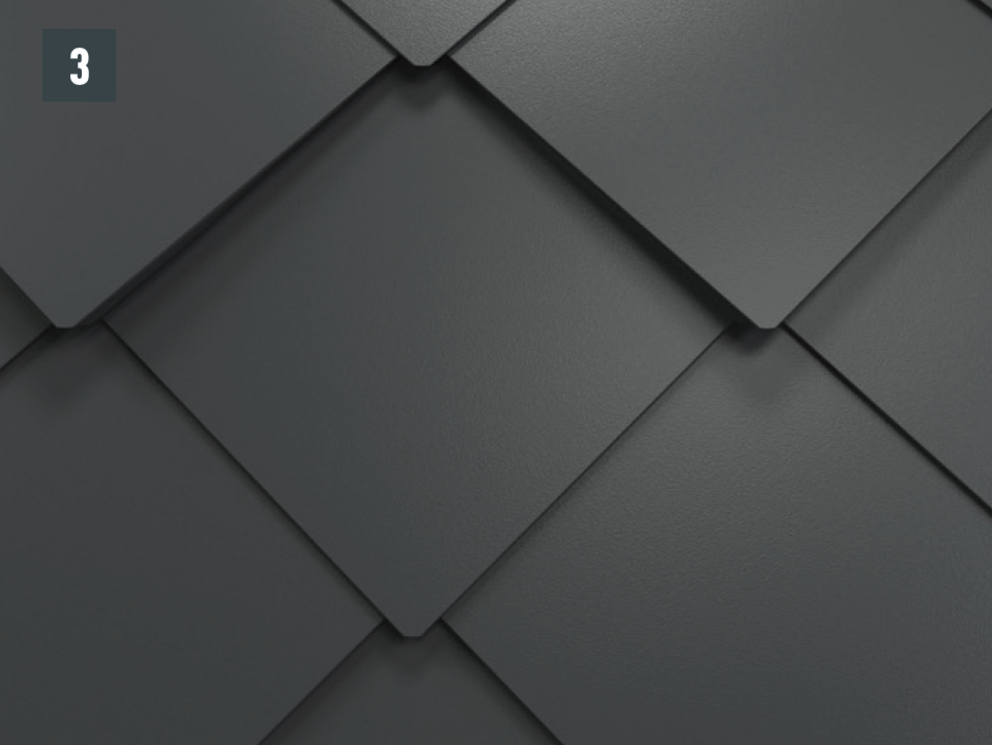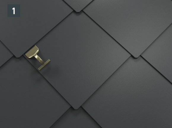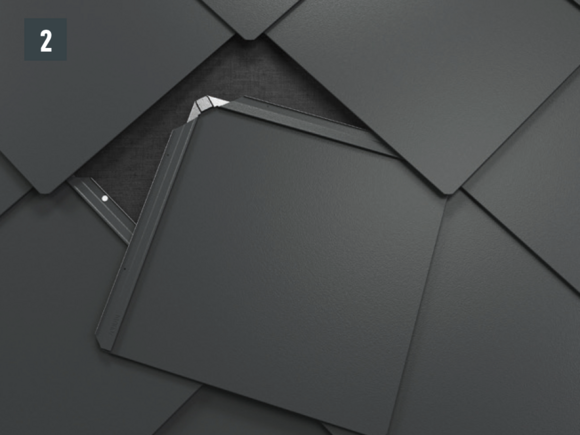 • Einhängfalz der neuen Dachraute 44 × 44 leicht öffnen, nach oben schieben und befestigen (Bild 3).