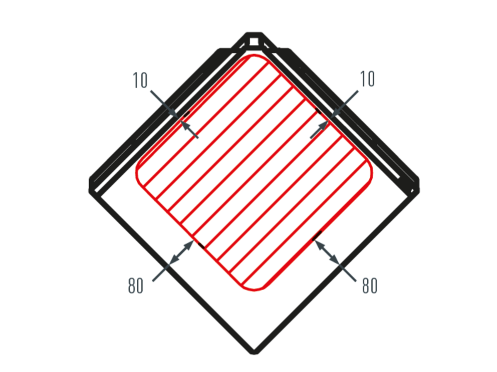 Achten Sie bei der Montage von Dachzubehörprodukten auf den zulässigen Montagebereich auf den Dachrauten 44 × 44. Nachfolgende Abbildung zeigt den Montagebereich für Zubehörprodukte auf Fußteilen. Für andere Zubehörprodukte können abweichende Montagebereiche definiert sein.