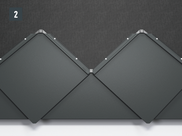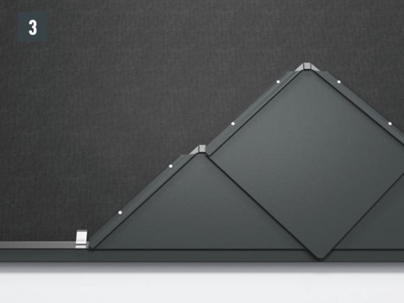 ACHTUNG: Untere Spitze der Dachraute 44 × 44 nicht nach unten biegen.