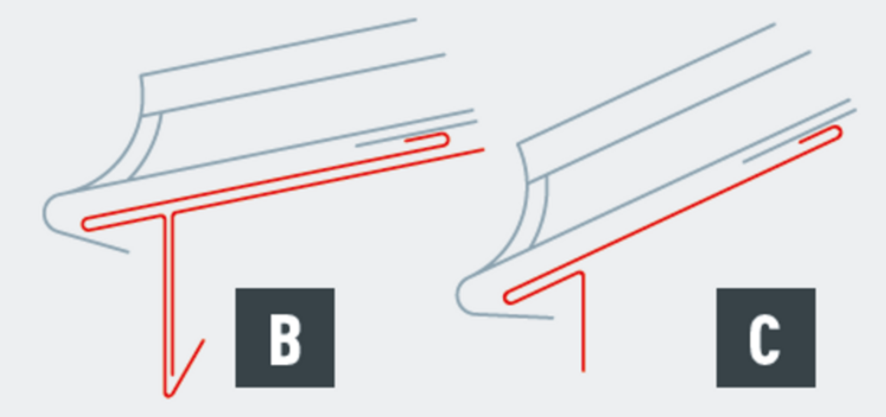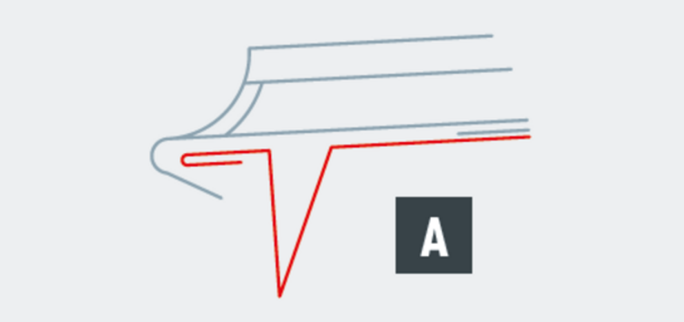 Saumstreifen (Traufstreifen) mind. 1,0 mm dick (z. B. Abb. A). Saumstreifen (Traufstreifen) 0,7 mm dick mit Vorstoßblech mind. 0,8 mm (z. B. Abb. B).