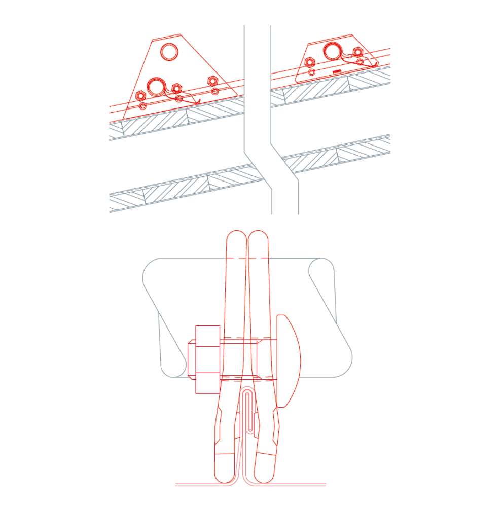 Bei Stehfalzeindeckungen wird der Schneeschutz mittels Sailerklemmen inkl. Rohrdurchzügen und Eisfängern ausgeführt. Die Anzahl der erforderlichen Schneeschutzreihen ist in Abhängigkeit der Objekt- und Standortgegebenheiten zu berechnen.