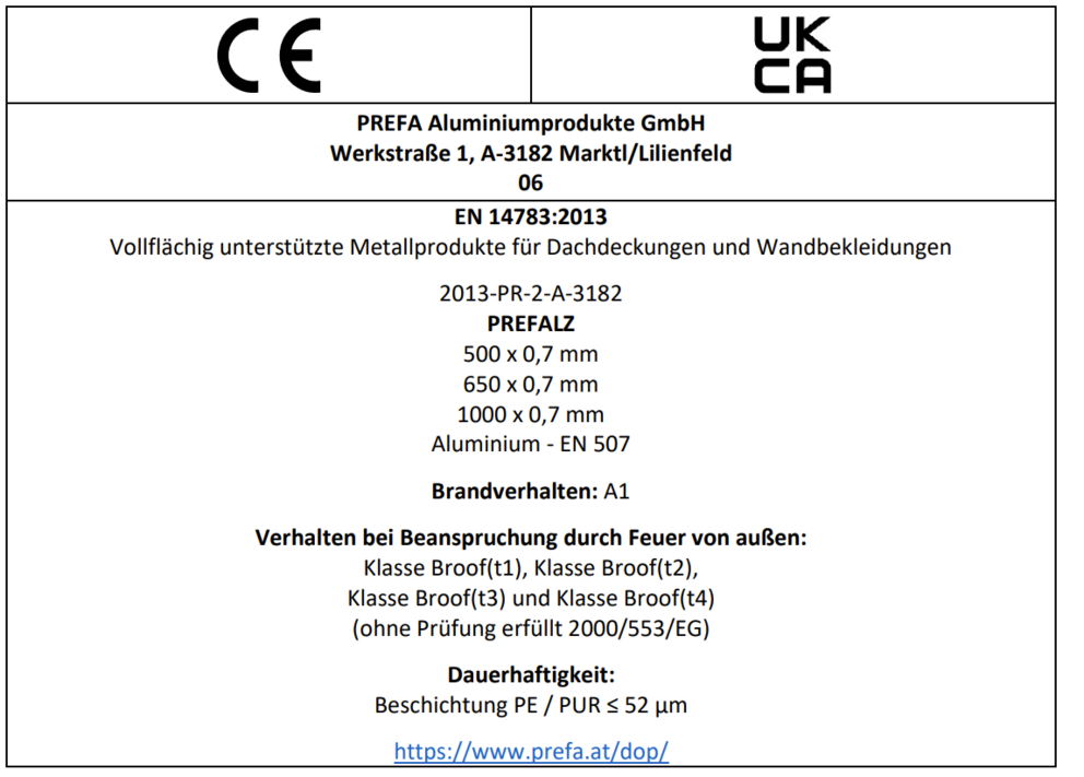 Die PREFALZ Coils sind an der Außenseite mit einem Aufkleber (siehe exemplarische Abbildung unten) gekennzeichnet.