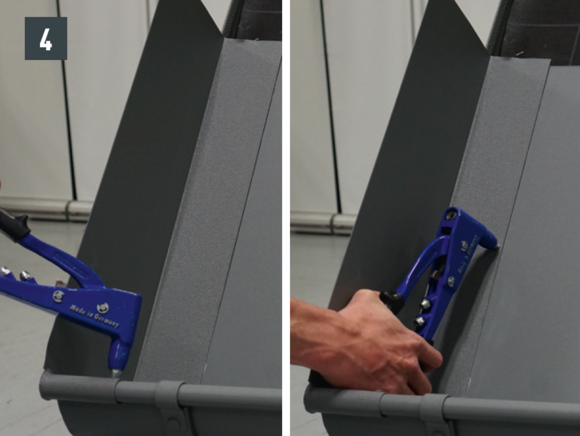 Die Saumrinnenverbindung kann auch als Nietverbindung mit 20 Stk. PREFA Patentnieten 4 x 9,5 mm im Kreuzstich und Abdichtung mittels PREFA Spezialsilikon hergestellt werden.