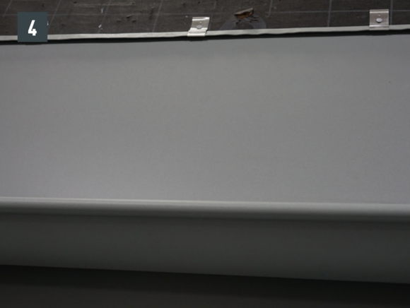 Die PREFA Saumrinne ist im Allgemeinen mit einem Mindestgefälle von 3 mm/m zu planen. In besonderen Fällen kann die PREFA Saumrinne jedoch auch ohne Gefälle geplant werden.