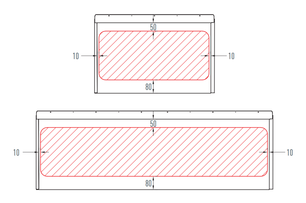 Sollten Sie etwas an die Fassade montieren (wie z. B. Lampen), achten Sie bei der Montage auf den zulässigen Montagebereich des Fassadenpaneels FX.12. Ist das Einhalten des Montagebereiches nicht möglich, ist eine Unterlagsplatte einzufalzen.