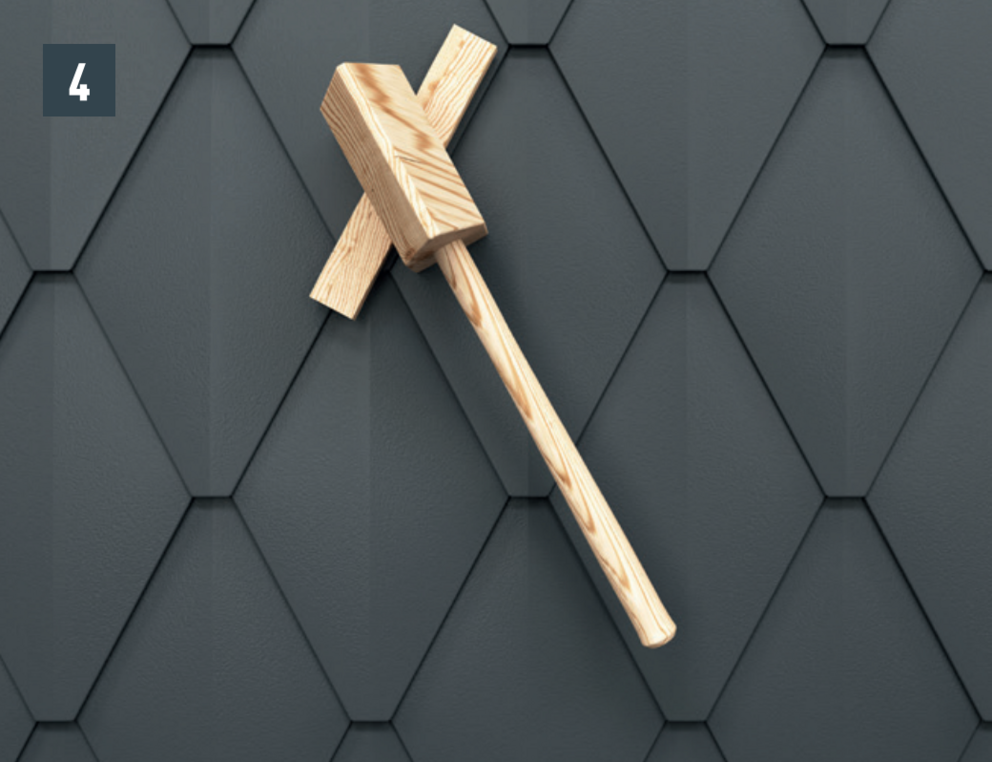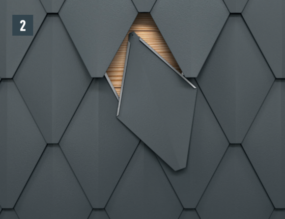 Einhängfalz der neuen Raute klein leicht öffnen, nach oben schieben und befestigen (Bild 3).