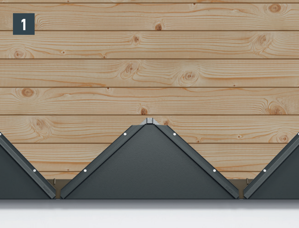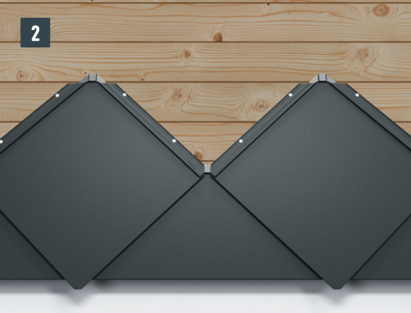 Die Befestigung jeder Wandraute 44 × 44 erfolgt direkt durch die vorgestanzten Befestigungslöcher mit vier mitgelieferten Rillennägeln 2,8/25.