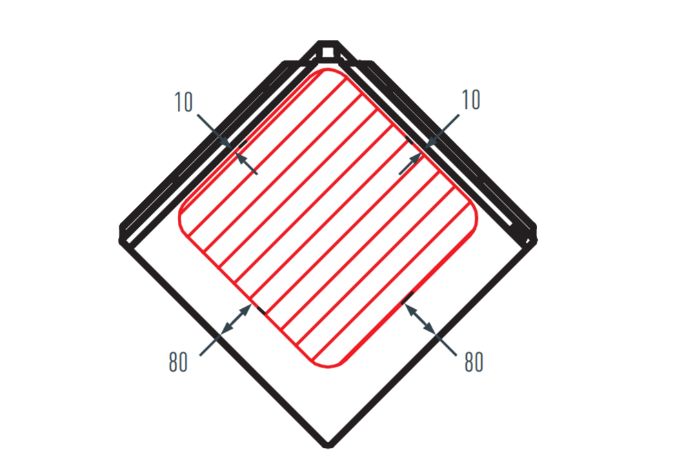 Sollten Sie etwas an die Fassade montieren (wie z. B. Lampen), achten Sie bei der Montage auf den zulässigen Montagebereich der Wandraute 44 × 44. Ist das Einhalten des Montagebereiches nicht möglich, ist eine Unterlagsplatte einzufalzen.