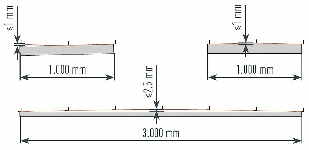 Auch bei einer fachgerechten Montage unter Berücksichtigung von Fest- und Gleitpunkten kann es je nach Farbe, Glanzgrad und Lichteinfall bei Temperaturwechsel zu einer Welligkeit kommen.