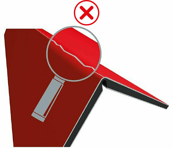 Werden Biegearbeiten bei niedrigen Temperaturen (≤ 15 °C) durchgeführt, kann dies ein schleierartiges Aussehen der Beschichtung verursachen. Um dieses zu entfernen, erwärmen Sie die Platte auf mind. 20 °C.