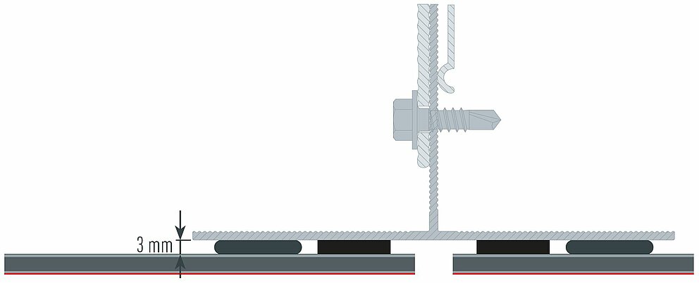 Für die mechanische Befestigung der Verbundplatten ist es notwendig, Fest- und Gleitpunkte vorzubereiten. Bohren Sie die Löcher mit einer handelsüblichen Bohrmaschine, Standbohrmaschine, Lochsäge oder einem Kreisschneider.