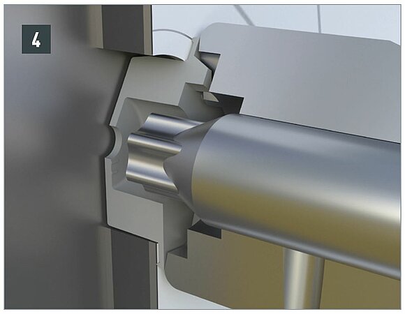 Bei der mechanischen Befestigung auf einer Holzunterkonstruktion wird der Gleitpunkt analog dem Festpunkt ausgeführt. Der einzige Unterschied liegt darin, dass keine Hülse in den Fassadenzentrierdichtring eingelegt wird.