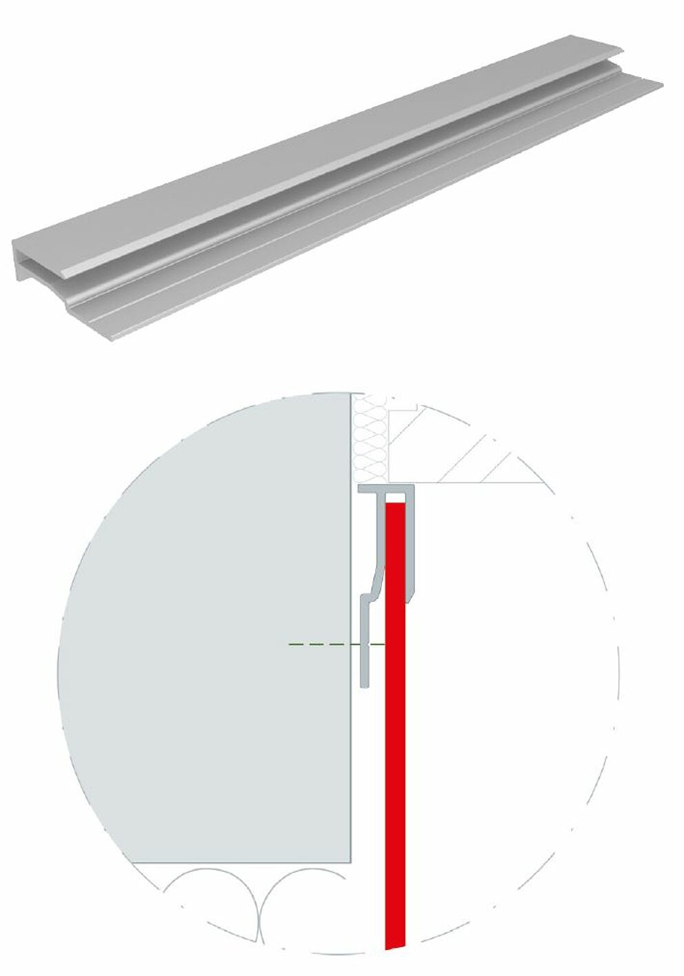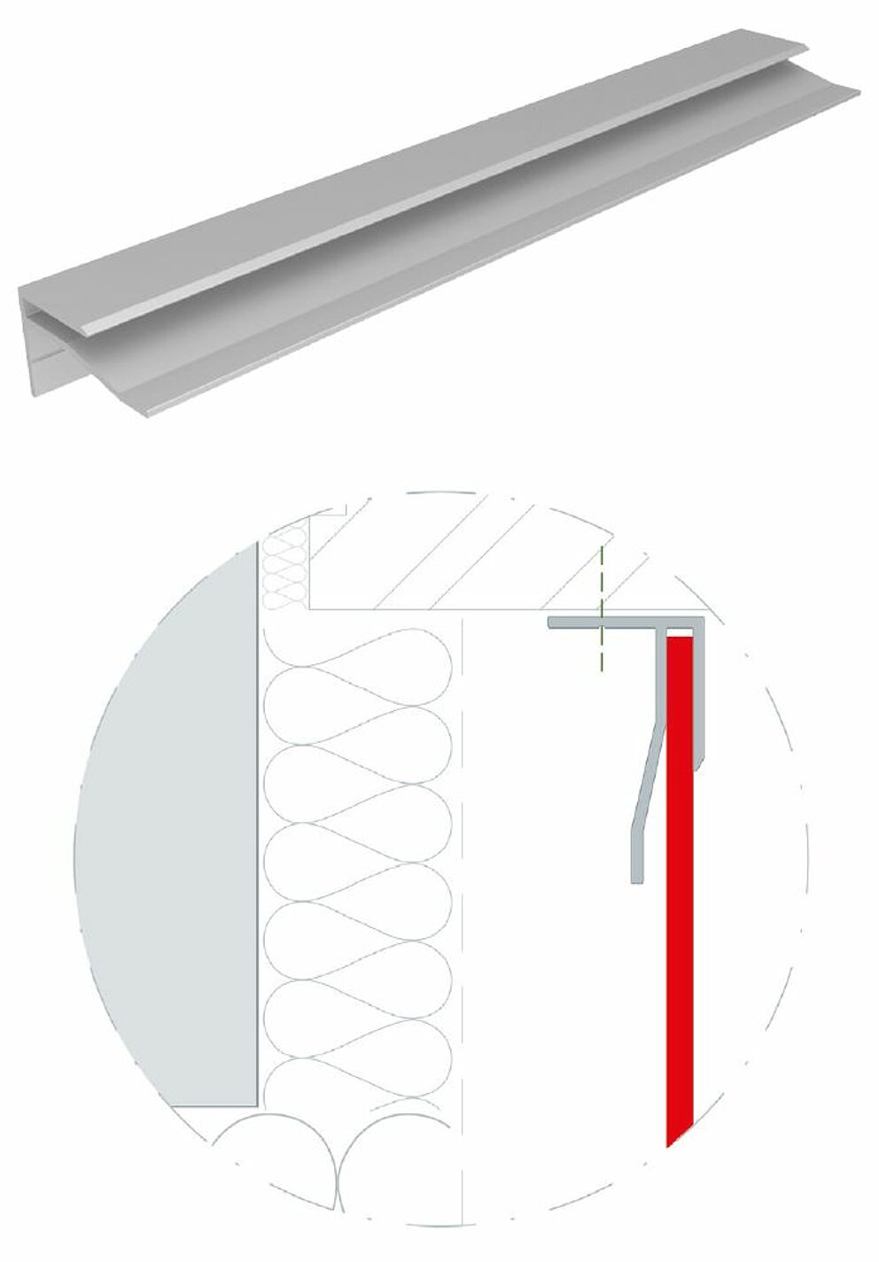 Die beiden stranggepressten Einfassungsprofile für Aluminium Verbundplatten mit einer Länge von je 6.200 mm können werkseitig pulverbeschichtet werden.