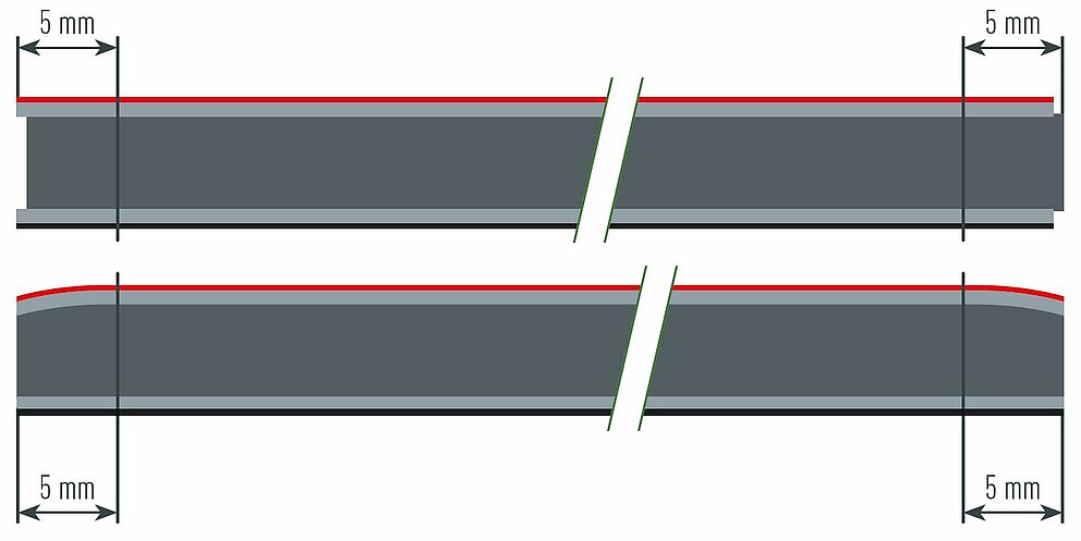 Aus diesem Grund ist bei der Bestellung von unbearbeiteten Platten darauf zu achten, dass die Rohformate allseitig mind. 5 mm besäumt werden müssen. So erhalten Sie rundum formschöne Schnittkanten, gewährleisten die Rechtwinkeligkeit und halten die Herstellerrichtlinien ein. Falls erforderlich, entgraten Sie die Platten nach dem Zuschneiden.
