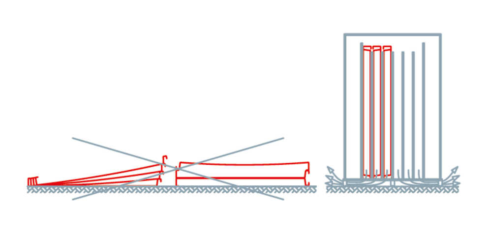 Die Verpackung des Herstellers ist nur eine Schutzverpackung für den Transport. Die Lagerung und der Transport von Aluminiumscharen haben senkrecht und auf ebener Fläche zu erfolgen.