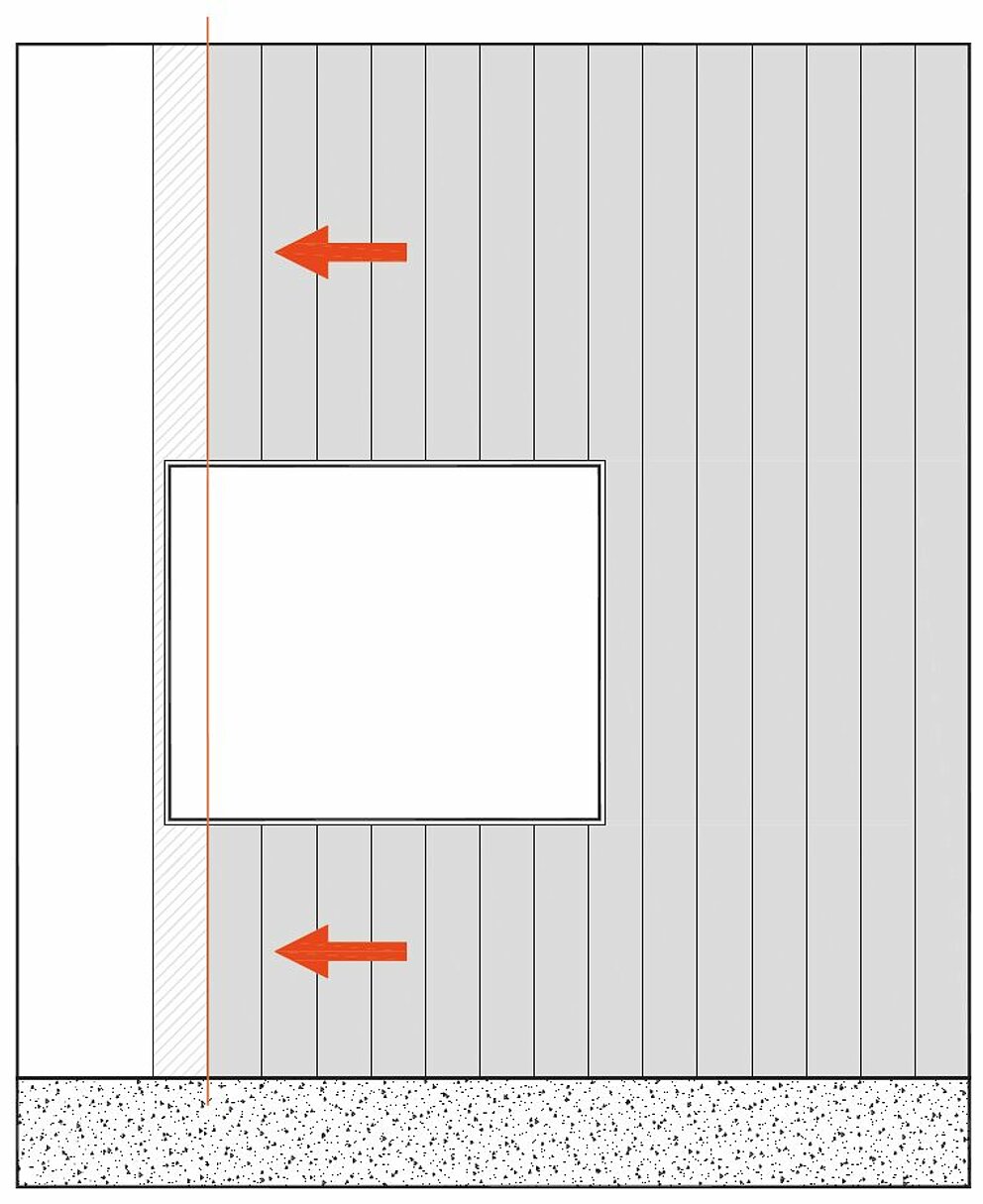 Es ist sinnvoll, sowohl bei vertikaler als auch bei horizontaler Ausrichtung die Baubreite des Sidings um das Fenster zu schnüren, da ansonsten die Gefahr besteht, aus der Flucht zu kommen.