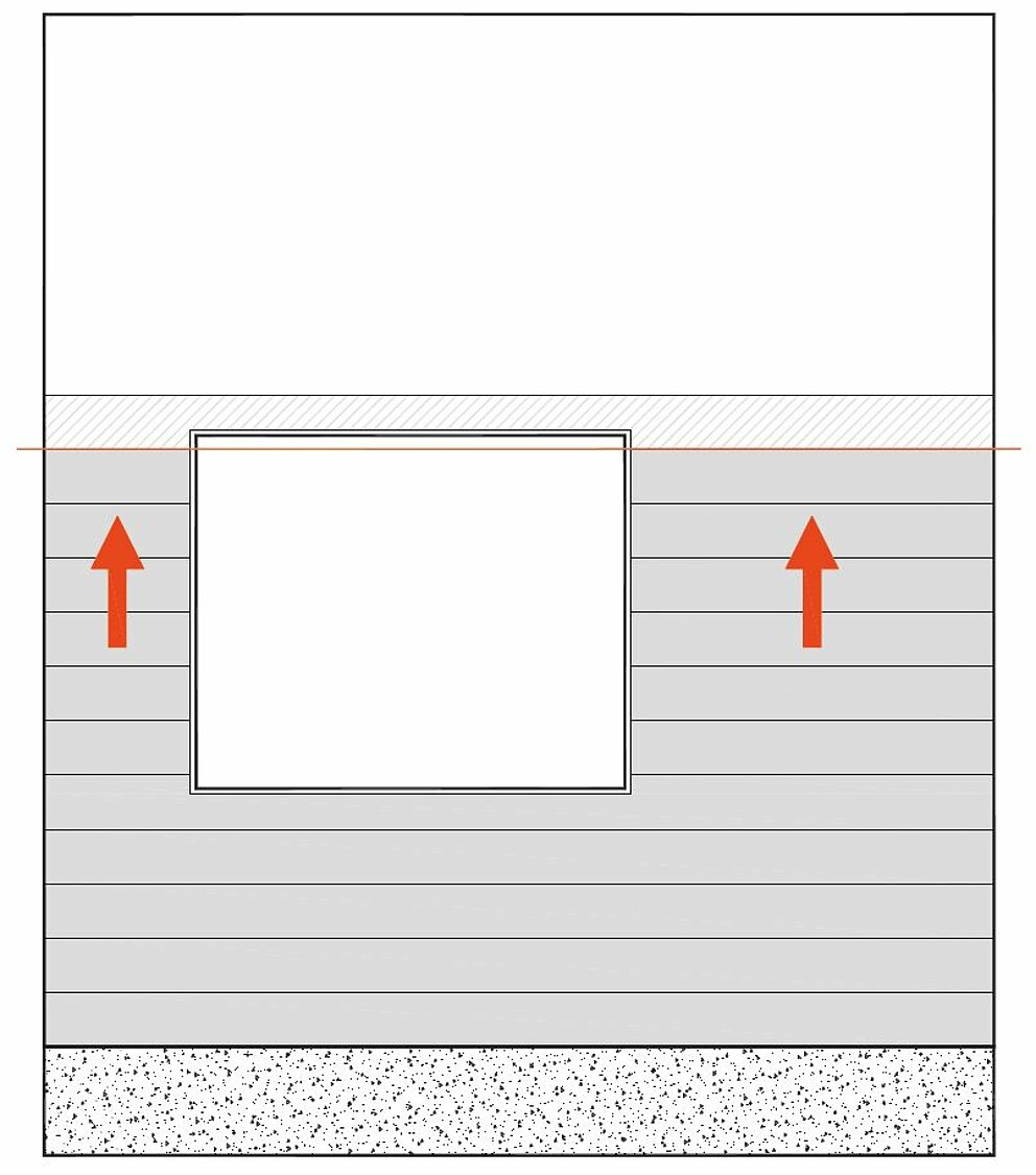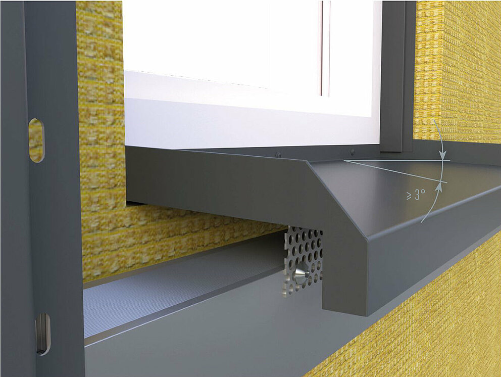 Die Fensterbank muss mit einem Gefälle von mindestens 3° ausgeführt werden. Beachten Sie hierbei die national geltenden Anforderungen.