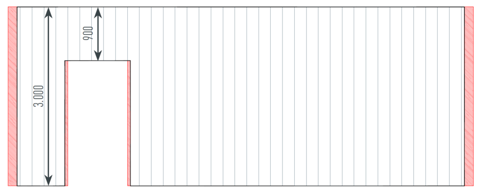 Wenn Sie nach bauseitigen Schrägschnitten eine Aussteifung in Form einer Endabkantung vorsehen, muss diese zuvor zum Zuschnittsmaß addiert werden.