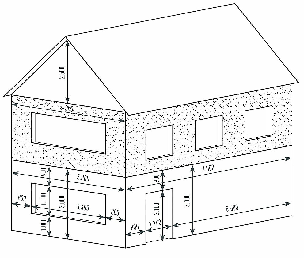 Unterbrechungen wie z. B. Fensteröffnungen < 1 m² sind zu vernachlässigen.