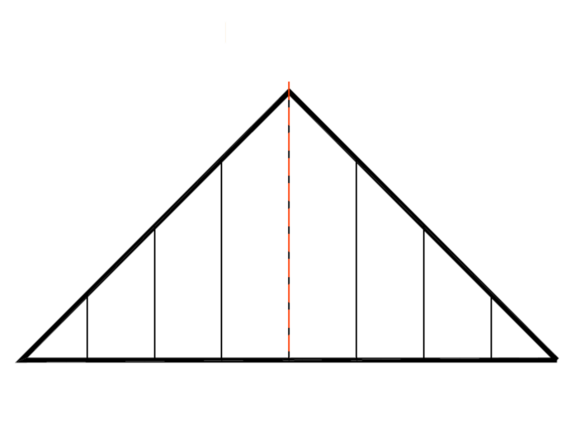 Bei Dreiecksflächen (z. B. Giebelwandverkleidungen) ist die symmetrische Ausrichtung des Sidings wichtig, um ein optisch ansprechendes Erscheinungsbild zu erzielen. Aus diesem Grund empfiehlt es sich, die Flächen vor Beginn der Montage zu schnüren, um mittig der Fassadenfläche entweder einen Stoß oder exakt die Mitte einer Siding-Baubreite zu platzieren.