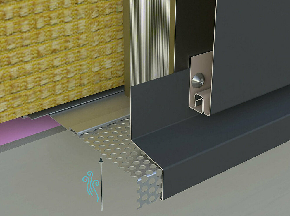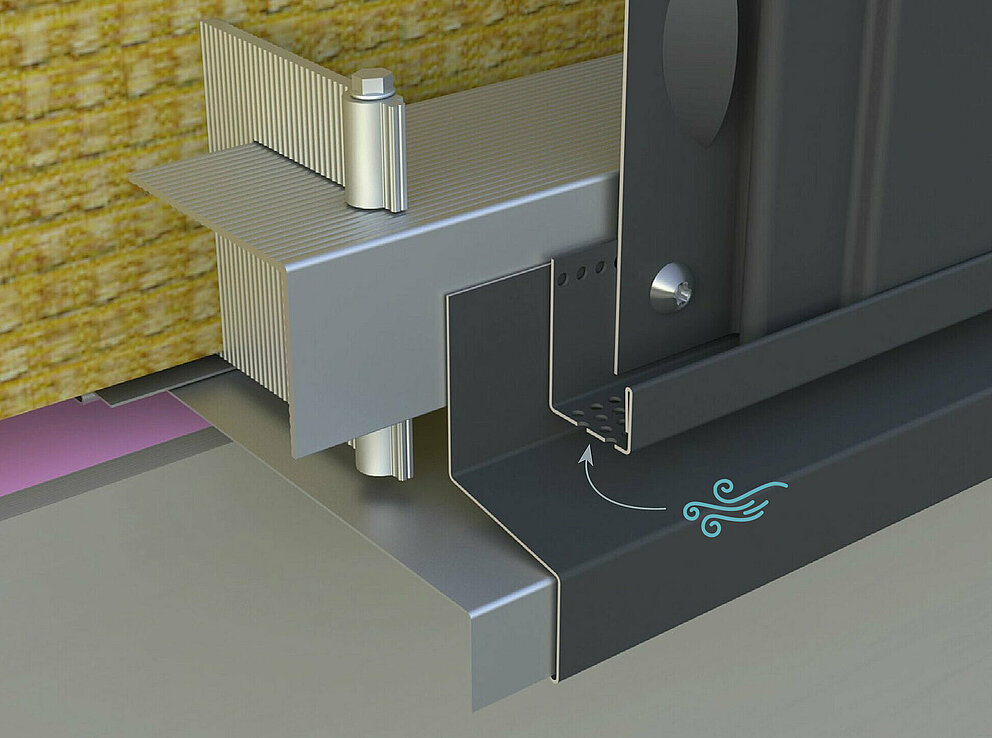 Um bei der Schnittlochblende eine ausreichende Zuluft der Hinterlüftung zu gewährleisten, muss der Abstand zwischen Schnittlochblende und Wetterschenkel mind. 10 mm betragen.