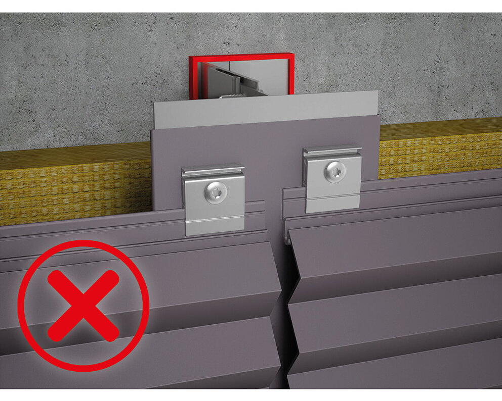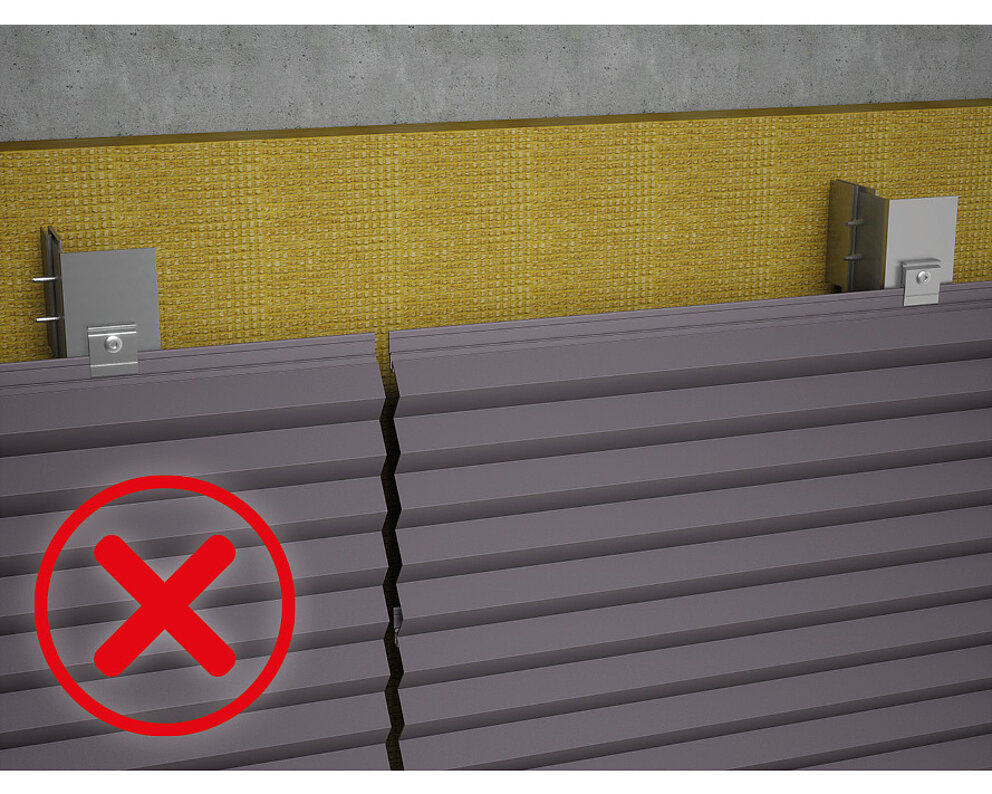 Der Profilstoß in der Fläche ist nicht zu empfehlen, da die max. Auskragung der Profile oftmals überschritten wird und dadurch offene Fugen entstehen. Zudem ist die Gefahr eines Versatzes in der Ebene sehr groß.