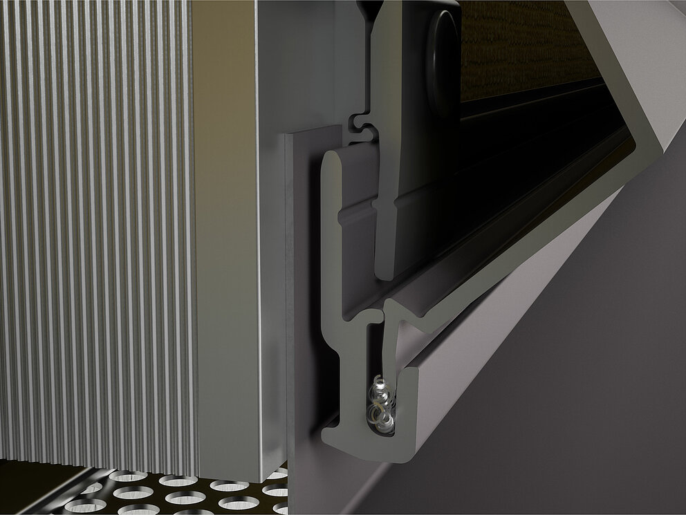 Um bei den Strangpressprofilen eine ausreichende Zuluft der Hinterlüftung zu gewährleisten, muss der Abstand zwischen Unterkante Profil und Wetterschenkel mind. 10 mm betragen.