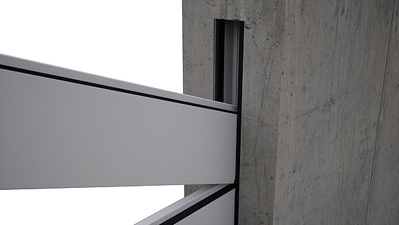 Bei der Montagesituation „In der Laibung (bündig)” und oben geschlossenem Mauerwerk ist ein Freiraum zum Einfädeln der Dammbalken zu berücksichtigen!