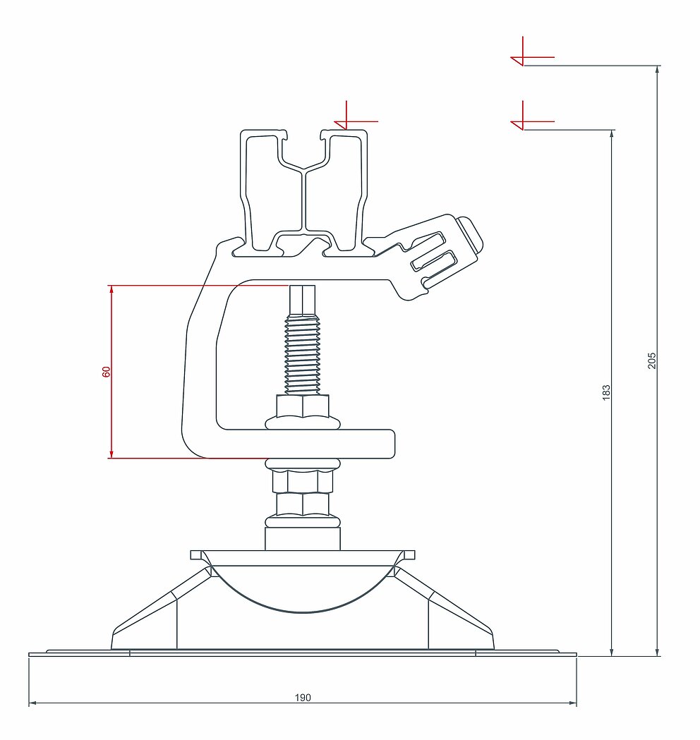 Mutter festdrehen, bis sich die EPDM-Dichtung nach außen wölbt (Gabelschlüssel: SW 18). Die zweite Mutter montieren und ganz nach unten drehen. Stockschraube von der Oberkante der zweiten Mutter (Auflage Schienenhalter) 60 mm nach oben abmessen und abschneiden. Schienenhalter aufsetzen und in entsprechender Höhe (entsprechend den restlichen Solarhaltern) mit zwei Gabelschlüsseln festziehen (Gabelschlüssel: SW 18).