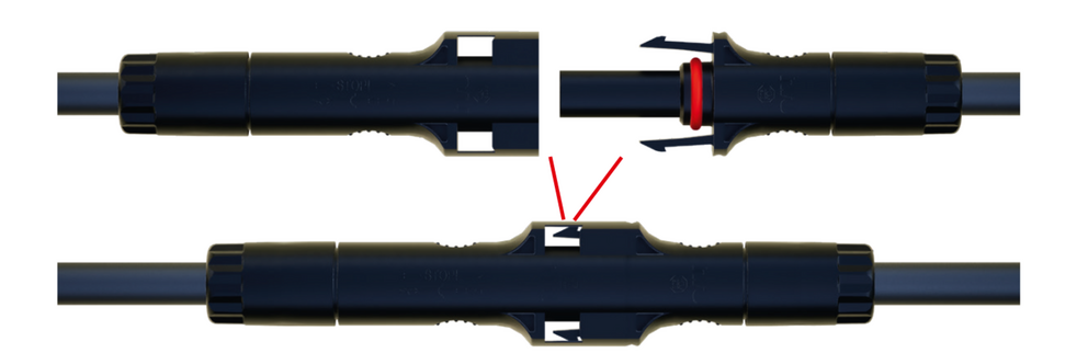 Strangzuleitungen und -ableitungen werden ab Werk vorkonfektioniert. Die Leitungsenden verfügen jeweils über einen PV-Stecker bzw. eine PV-Buchse,
