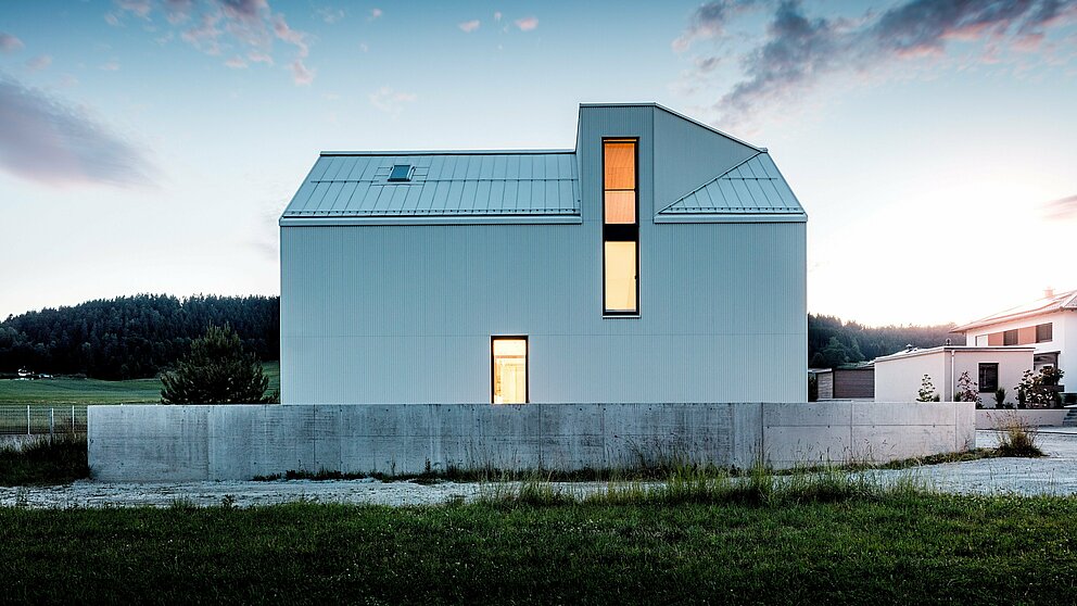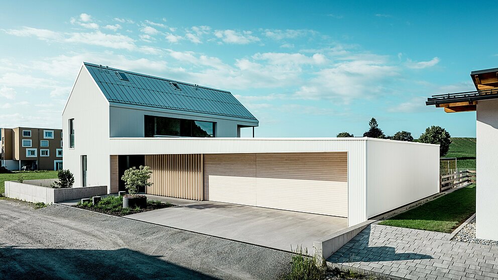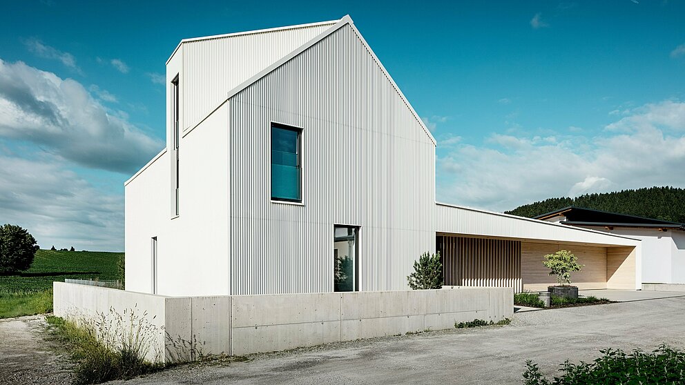 Material: PREFALZ Dach und PREFALZ Fassade, P.10 Reinweiß