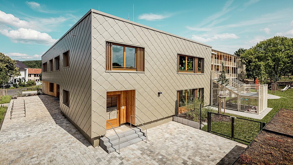 Eine Kindertagesstätte mit bronzefarbenem Mantel