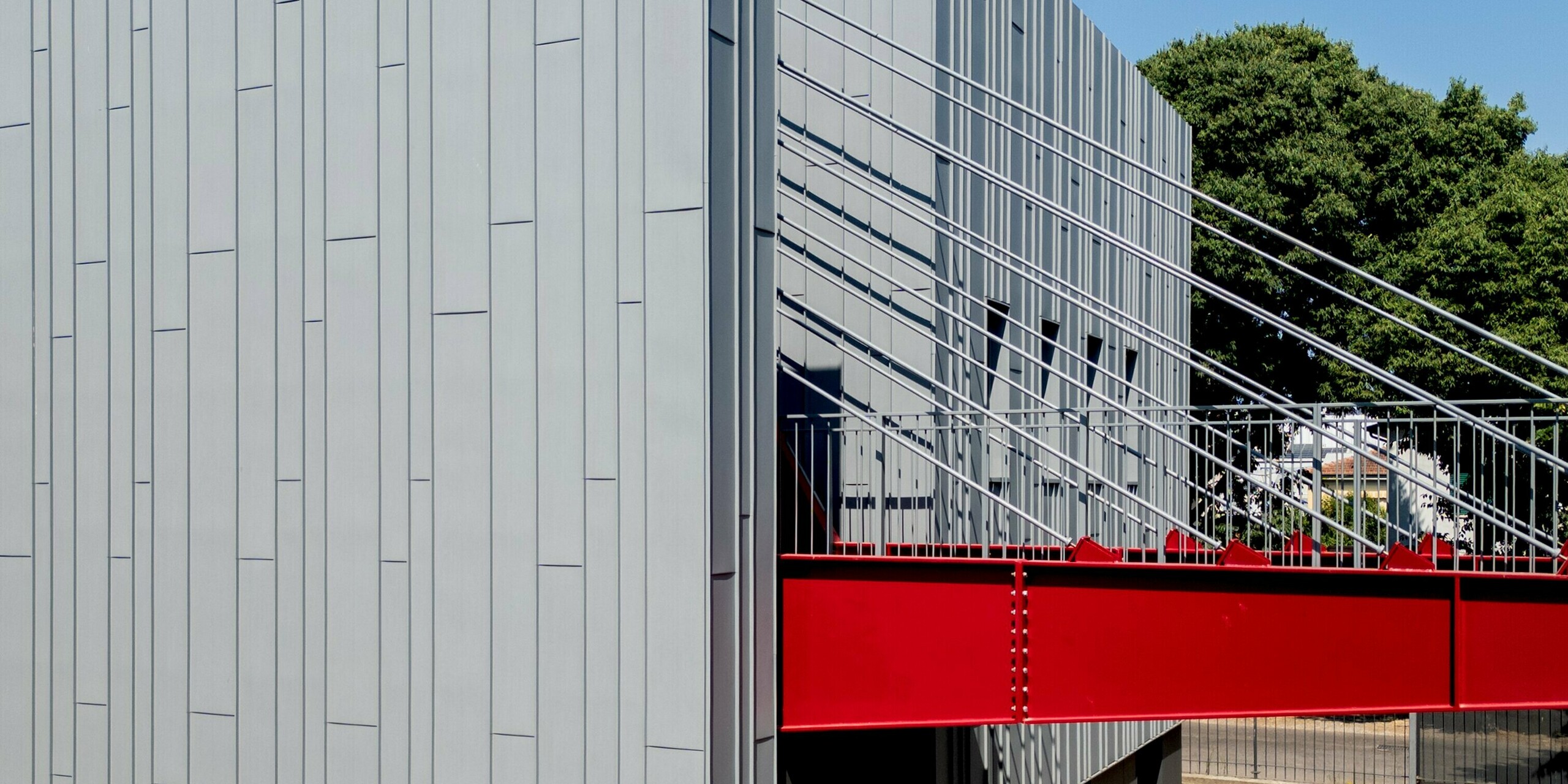 Die Scuola Arte e Mestieri F. Bertazzoni in Suzzara zeigt eindrucksvoll, wie moderne Bildungsarchitektur mit hochwertigen Materialien neue Maßstäbe setzt. Zum Einsatz kamen die langlebigen PREFA Fassadenprodukte PREFALZ und PREFABOND, die für ihre Widerstandsfähigkeit und flexible Verarbeitung bekannt sind.